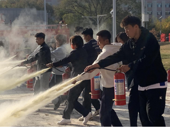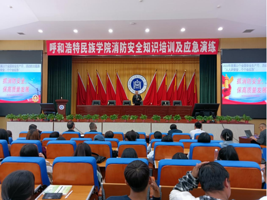 本次培训首先在学术报告厅举办,由内蒙古消防安全行业协会专家邹顺担任主讲,从落实消防安全责任出发,普及了安全警示、法律法规、防火防灾预防灭火方法、应急逃生能力等安全知识同时,通过PPT展示,条理清晰、深入浅出地讲解了一个个怵目惊心的真实事故讲座结束后,在南食堂进行了消防应急逃生演练,师生通过安全通道有序撤离到指定位置,随后在报告厅东侧组织开展了灭火及模拟烟雾逃生帐篷演练。