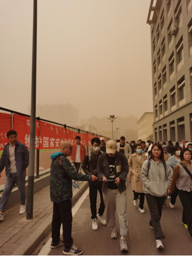保卫处工作人员向下课后的师生分发宣传单与学习手册