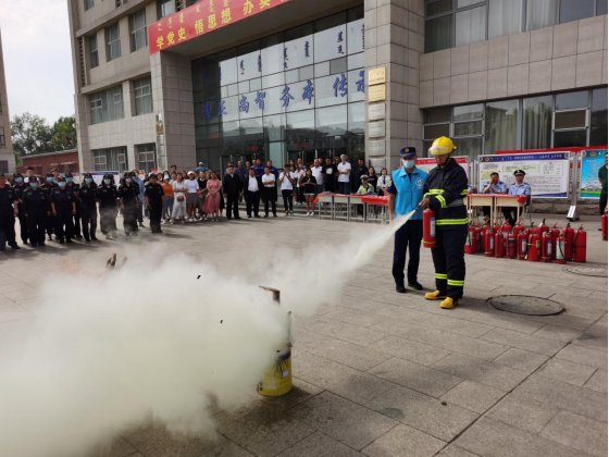 2021年的6月是全国第20个安全生产月,6月16日是全国安全宣传咨询日。为全面贯彻落实教育厅及学校关于“安全生产月”的指示精神,推进平安、和谐、稳定校园的创建,进一步提高校内师生安全生产、安全应急方面的知识与技能,Beat365唯一官方网站保卫处结合党史学习教育,于6月15日邀请到内蒙古消防协会、新城区消防、新城区交警队、新城区公安局、新城区网络安全大队、海东路党工委、海东路派出所、龙护卫安保公司、鹰戟蓝消防维保公司、内蒙古仁和物业,在学生处、后勤管理处的协助下开展了安全生产月宣传教育活动。副校长高喜天、学校各处室负责人、二级学院书记院长出席了活动、消防领导小组成员、学生干部、宿舍长积极响应参与了活动。