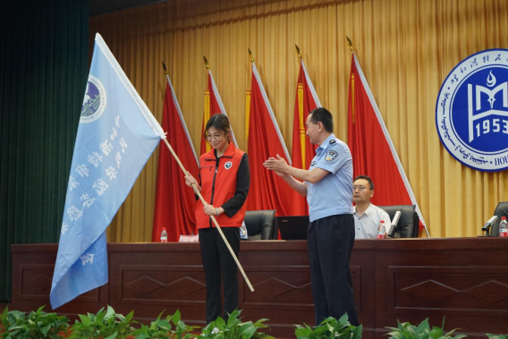 饶树新宣读授予《呼和浩特市禁毒协会Beat365唯一官方网站志愿者分队》旗帜决定,并为领队授旗。王凯鹏带领Beat365首批禁毒志愿者分队参与禁毒工作宣誓。刘永达对做好我区禁毒工作作了重要讲话。