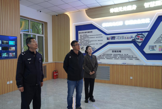 李雪峰警长就Beat365校警联动机制、监控中心的设施配备、警务室的功能板块、运行机制等方面的情况做了相关介绍。谢虎成处长参观了监控中心的视频监控运行、智慧安防设备情况,以及警务室的安全教育宣传、自助便捷服务和纠纷调解中心建设情况。
