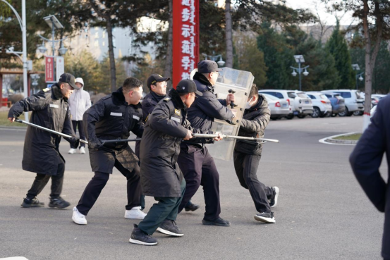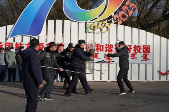为进一步提高保卫人员应急处置能力,提升校园安全防范能力,11月25日,安全管理处联合公安新城分局海拉尔东路派出所对学校安保人员开展反恐防暴应急演练。
