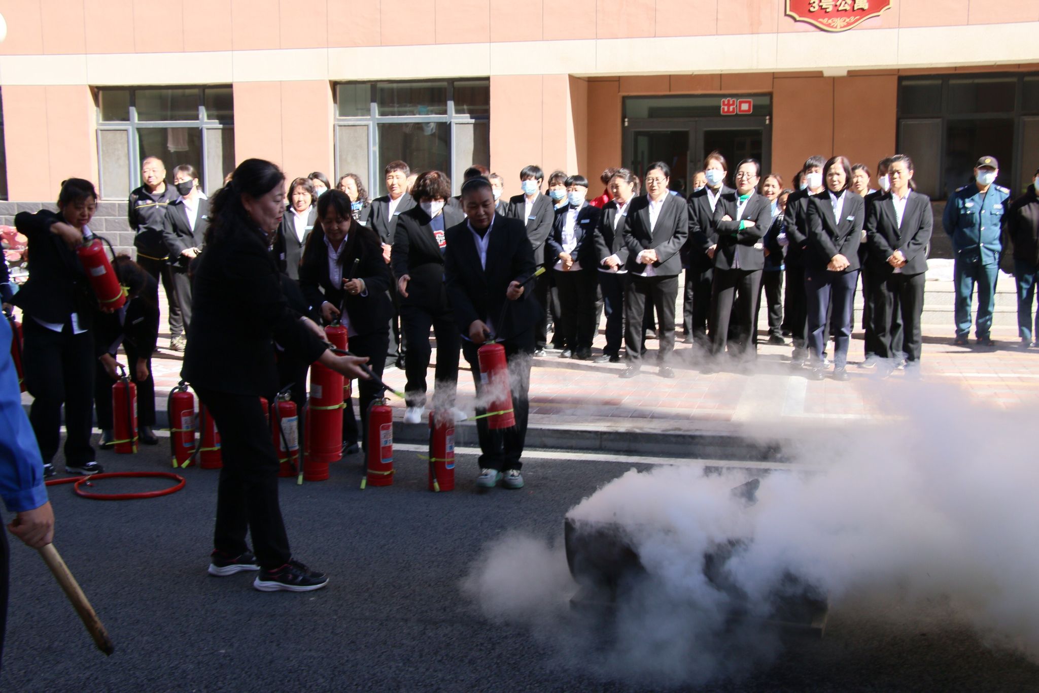 随后,在3号公寓门前空地进行消防实操演练。在技术人员的指导下,参与人员纷纷上前,亲身体验使用灭火器、消防栓扑灭模拟火源。