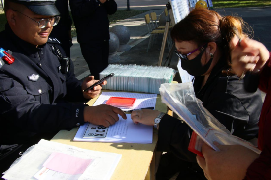 活动中,新城区交警大队、管区中队及车管所业务骨干组成专项服务小组,携带移动办公设备、牌照制作工具等进驻校园,工作小组逐一核对身份证、购车凭证等材料,快速完成车辆信息录入、拍照存档,并免费为学校师生、员工安装号牌。同时,交警同志针对电动车通行规则、安全骑行、违规处罚等问题,为师生、员工提供一对一解答。(本次车牌办理仅针对两类车辆:一是前期已在学校安全管理处完成校内实名登记的存量电动自行车;二是师生员工个人所有,仅在校外使用的电动自行车。)