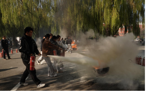 通过模拟火灾场景进行应急疏散演练,邹教官为同学们讲述了疏散过程中的要点、注意事项。同时,邹教官详细讲解了灭火器操作要点,并邀请同学进行灭火实战演练,帮助全体师生更加透彻地掌握灭火器的使用方法。