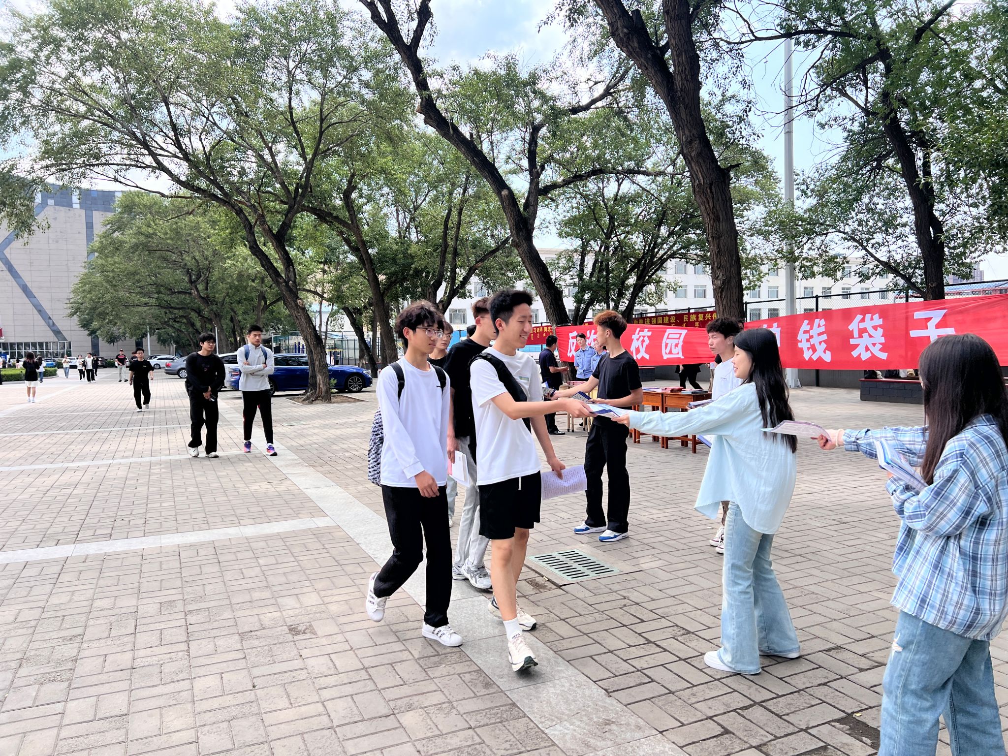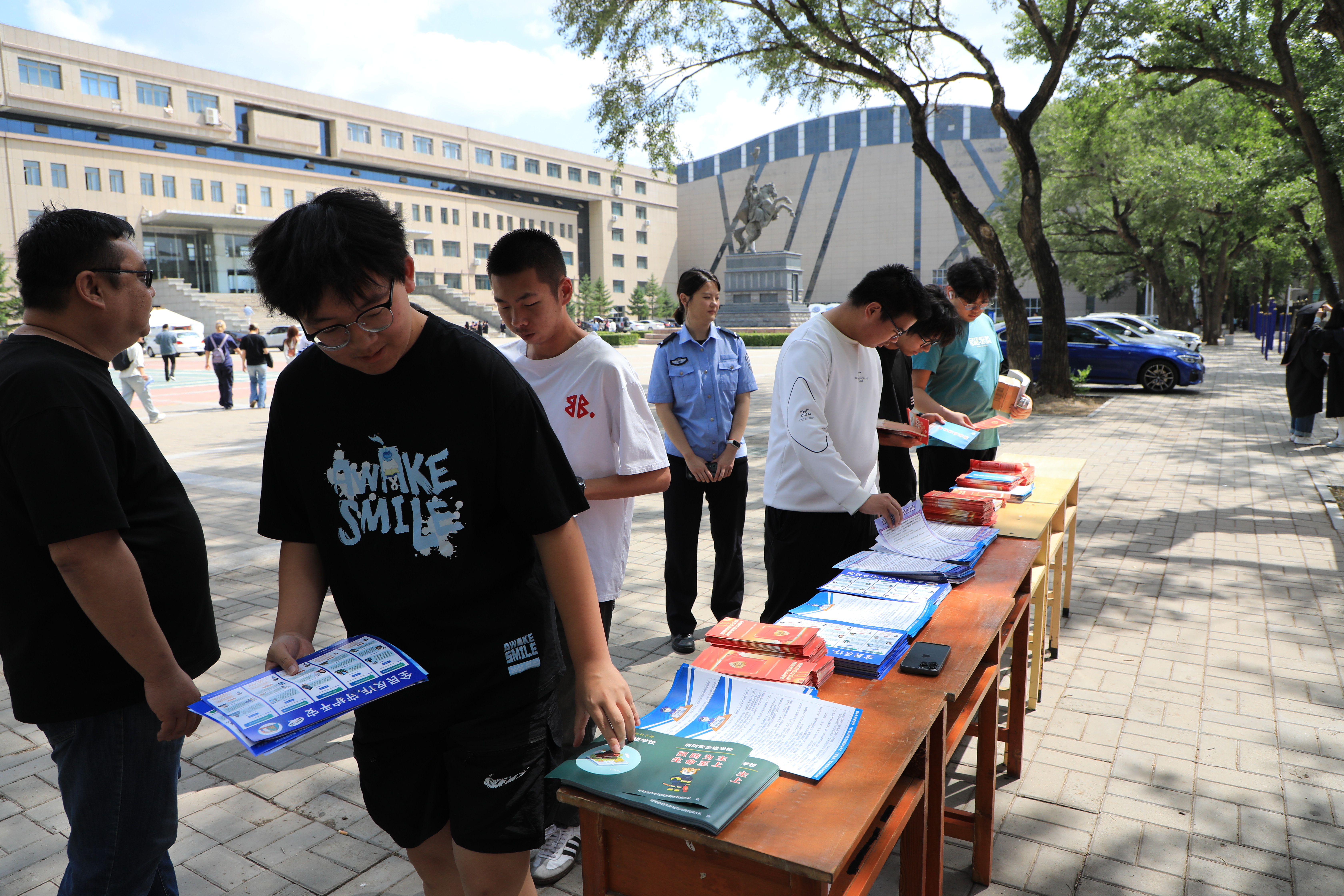 活动中,派出所民警与校园志愿者组成宣传小队,在都林楼前广场向过往学生发放防范网络诈骗、安全生产等宣传手册。手册内容包括常见诈骗类型的防范指南以及宿舍用电安全细则、校园火灾逃生技巧、实验室危化品操作规范等安全生产知识。同时在发放过程中,民警、志愿者为学生提供“一对一”咨询服务,向学生讲解“刷单诈骗”常见话术、宿舍安全注意事项等,鼓励学生将手册分享到班级群、朋友圈,带动身边更多人学习安全知识,真正实现 “人人讲安全” 的良好氛围。