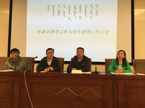 2016511晚,传媒系在图书馆一楼报告厅召开了教学工作与学生管理工作大会。传媒系党总支书记常喜、副主任额尔敦毕力格、办公室主任成格乐及全系全体学生和班主任参加了会议。会议由团总支负责人齐丹主持。