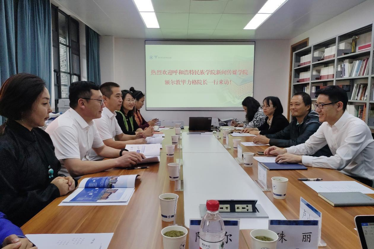 新闻传媒学院院长额尔敦毕力格首先介绍了学院情况、办学特色、转型发展等方面内容,浙大传媒与国际文化学院院长韦路就办学情况、课程建设、人才培育和国际交流等方面进行了详细讲解,随后双方开展座谈交流。各教研室主任根据当前转型发展需要,本着学习借鉴的目的向浙大院方寻访经验,此外还就当前学科发展、学生培养、双创就业等方面内容进行交流。