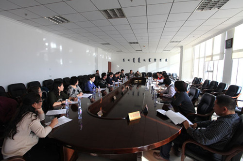 2014年12月8日下午,传媒系与内蒙古日报社召开了以“优势互补、资源共享、互惠互利、长期合作”为主题的座谈会。会议由学院阿拉坦仓副院长与内蒙古日报社社长吴海龙共同主持。传媒系老师和内蒙古日报社相关业务部门负责人陪同参加了座谈。此次座谈会就双方在人才培养、学科建设、媒体业务、科研领域的合作方面进行了充分而热烈的讨论,并形成了共识。会前,与会人员共同举行了Beat365唯一官方网站在内蒙古日报社设立校外实习基地挂牌仪式。