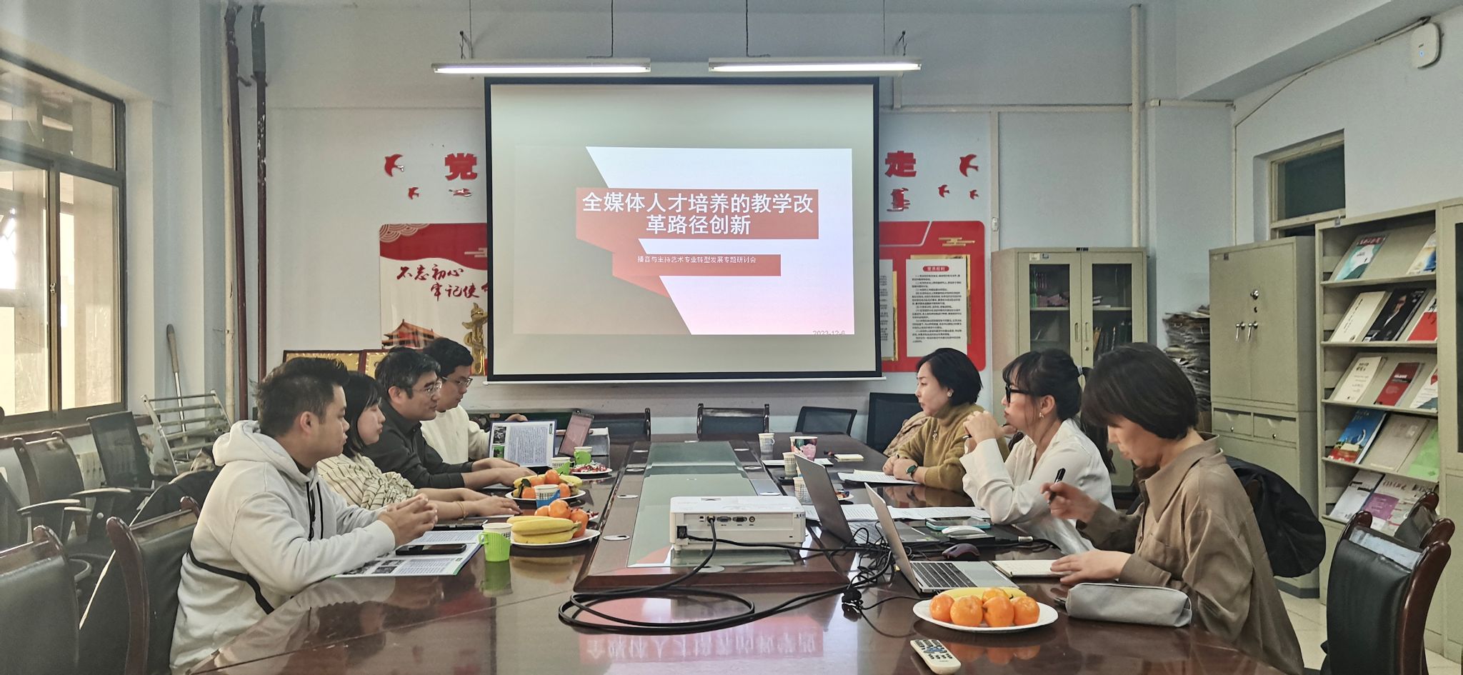 12月6日,在学院会议室,播音与主持艺术教研室组织进行了专业转型发展系列活动之三——“全媒体人才培养的教学改革路径创新”专题研讨会。副院长安迎春出席并发言,播音与主持艺术教研室教师乌日更照来、图木舍及乌日罕参加本次研讨会。