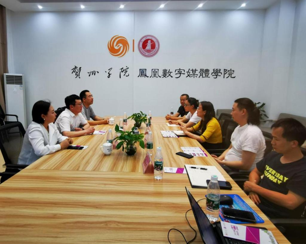为扎实推动主题教育走深走实,推进专业转型发展,5月21日,新闻传媒学院党总支书记额尔敦毕力格、副院长安迎春、党政办主任阿特尔到贺州学院凤凰数字媒体学院开展调研,旨在了解该校文化与传媒学院和凤凰数字媒体产业教育集团合作办学经验,借鉴产教融合的成功举措。贺州学院文化与传媒学院党总支书记何婷、凤凰数字媒体学院执行院长祝林及相关科室负责人出席接待并开展交流座谈,凤凰传媒产教集团副总裁刘建飞陪同考察。