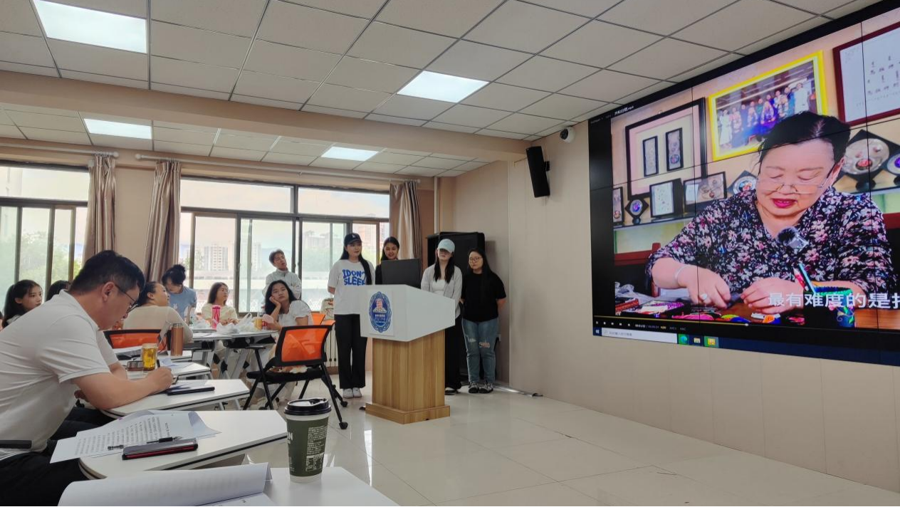 见习成果汇报环节,共展示了22部学生作品,涉猎广泛,选题深入,例如“国家的孩子”张健的感人故事、国家级非遗项目铜银器代表性传承人巴图陶高的精湛技艺、非遗石雕传承者海力布的匠心独运以及乌拉特刺绣非遗传承者孟和其其格的巧夺天工等作品。此外,创作内容还聚焦了乌拉特毡艺、羊奶皂制作、炕围画绘制、刺绣工艺以及传统服饰等独具特色的北疆文化瑰宝。