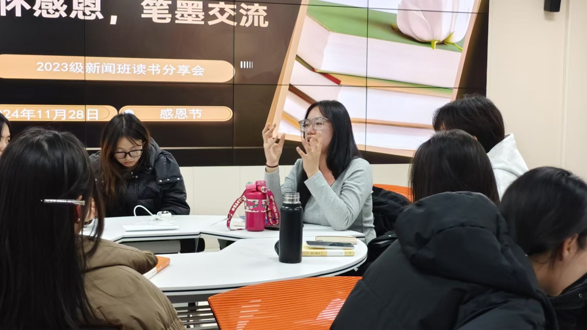 11月28日下午,2023级新闻学班在都林楼314教室成功举办了一场以“心怀感恩,笔墨交流”为主题的读书分享会,师生共同开启了一场精彩的读书心得交流之旅。