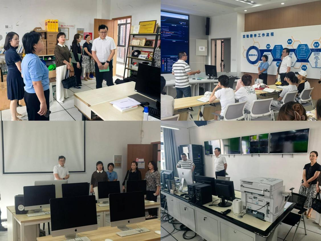 调研组一行参观了各专业实验室、新媒体教室、演播室、直播间、回影像工作坊、AIGC工作坊等。