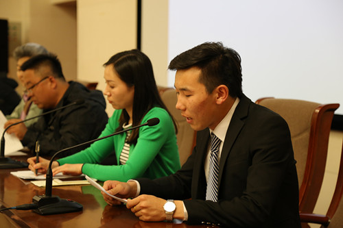 齐丹老师宣读了《传媒系征兵工作领导小组名单》及《传媒系大学生心理健康工作领导小组名单》。已经报名参加今年征兵项目的2015级新闻学班特日格乐同学宣读了“征兵入伍 报效祖国”主题倡议书;2014级摄影班大学生士兵孟根乌那嘎同学进行了主题为“当兵光荣”的演讲,分享了入伍故事和心得体会。