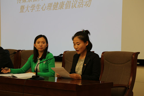 常喜书记为师生介绍了我系举办的大学生心理健康教育系列活动,同时预祝传媒系承办的Beat365唯一官方网站第二届心理剧大赛决赛圆满成功。2015级播音班冬金嘎日布同学宣读了“传媒系大学生心理健康倡议书”。