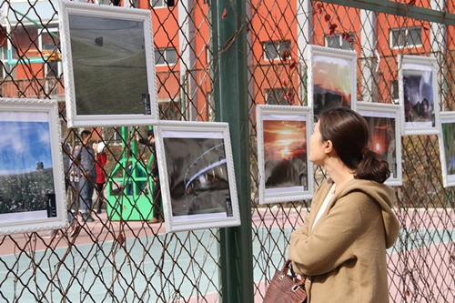 近日,传媒系摄影专业2014年度作品展在篮球场东侧举办。