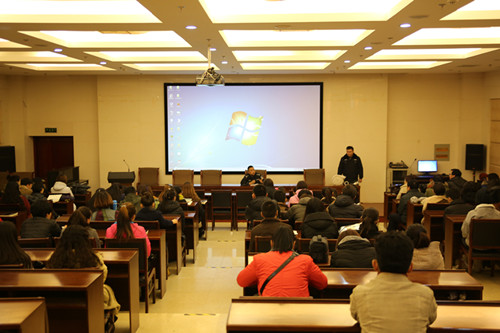2014年12月8日,传媒系邀请保卫处消防科尚磊科长、李延茂科长为传媒系全体消防安全小组成员和学生代表共计一百余人开展了消防安全主题讲座。