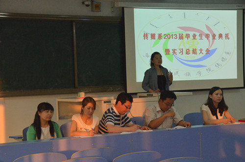 又到一年毕业时,传媒系2013届学生毕业典礼暨实习总结大会于6月14日在新教学楼518举行。传媒系副书记常喜老师、副主任额尔敦毕力格老师、团总支负责人齐丹老师、各毕业班班主任及毕业生共计80余人参加了毕业典礼,会议由团总支负责人齐丹老师主持。