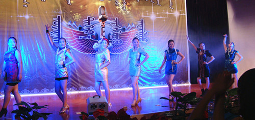 晚会首先由女子电声乐队的一曲激情四射的《吉他之歌》开场就立刻引爆全场气氛。苏日嘎等同学采用不同的组合形式,用饱含深情的诗歌展示了语言和声音的魅力。散萨日等同学表演的蒙古贝尔格舞蹈以其新颖的表演创意、独特的民族风情以及洋溢的青春味道赢得了观众阵阵掌声。红格尔珠拉等近20名同学的民族服装展示流光溢彩,给大家带来了民族与时尚元素融合的视觉冲击。女生萨克斯独奏《暗香》、幽默风趣的老人情景舞蹈、寓意深刻的小品《录取主持人》等节目也都一一成为晚会的亮点。现场掌声和欢呼声不断,演员和观众都沉浸在一片欢乐的海洋之中。