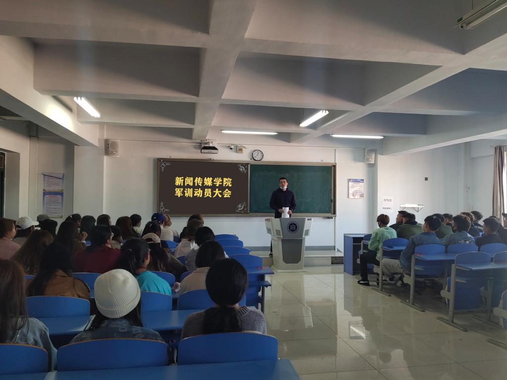 10月13日上午,新闻传媒学院在都林楼502教室召开了2020级新生军训动员大会。20级辅导员苏日巴特为学院66名参训学生进行了主题教育宣讲。