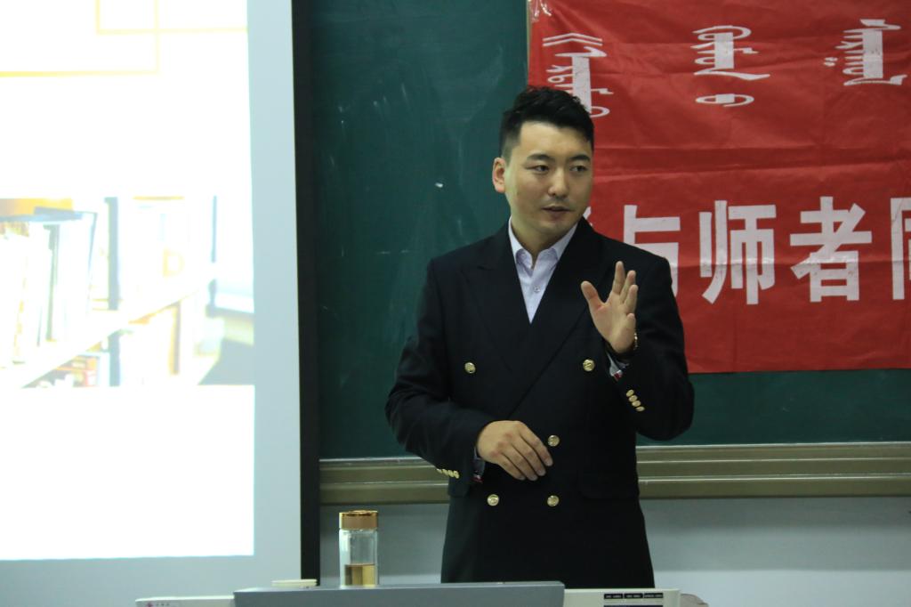 讲座中,赛音乌力吉给同学们分享了自己在大学期间发生的有意义的故事。他强调作为大学生该如何利用好这四年的时光去有效的学习;大学生面对生活中的困难时该如何应对等问题与学生做了深入的交流互动。赛主播以亲身经历告诉学生:“你们或许觉得现在在课堂上所学到的知识点一点用处不大,但是你们真正踏入社会后就会意识到课堂上所学到的内容对你们将来的生活和工作有至关重要的作用。”