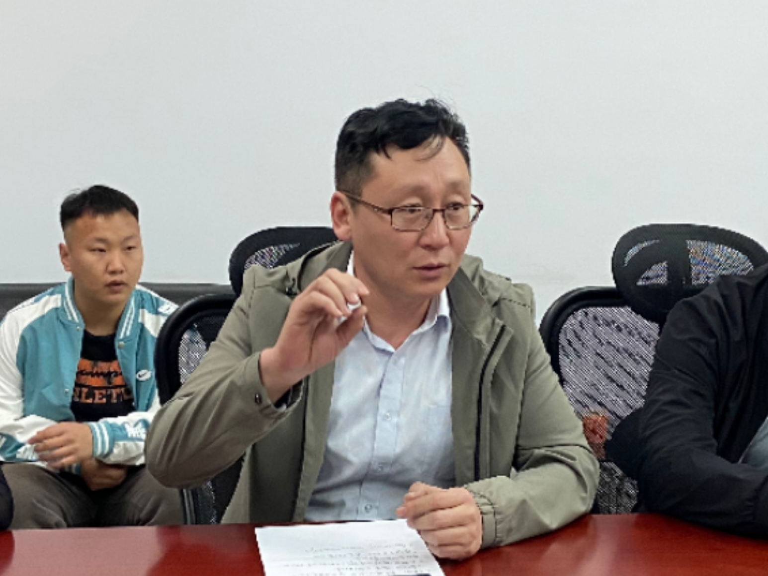 额尔敦毕力格书记随后讲话,对今年大赛予以了重视和期待,鼓励学生要积极参与、敢于争先,同时对学院历年大赛开展情况、成效和不足进行了详细总结。哈申图雅院长着重强调了斯钦图力古尔总经理成为我院“互联网+”大赛企业导师的重要性,对日后学院“双创”事宜的带动和帮扶有着极大的推动作用。斯钦图力古尔总经理则重点讲述了国内“互联网+”大赛的赛制形式,以及比赛对于学生学习﹑生活、就业等各方面的重要性,同时表示愿意尽己所能帮助学生投入到赛事的各项准备当中。最后,合作双方就如何更好地开展“互联网+”大赛各项工作,及如何高质量建设大赛项目等有关话题进行了深入探讨和交流,希冀共同推进学院“双创”工作迈向更高的台阶。