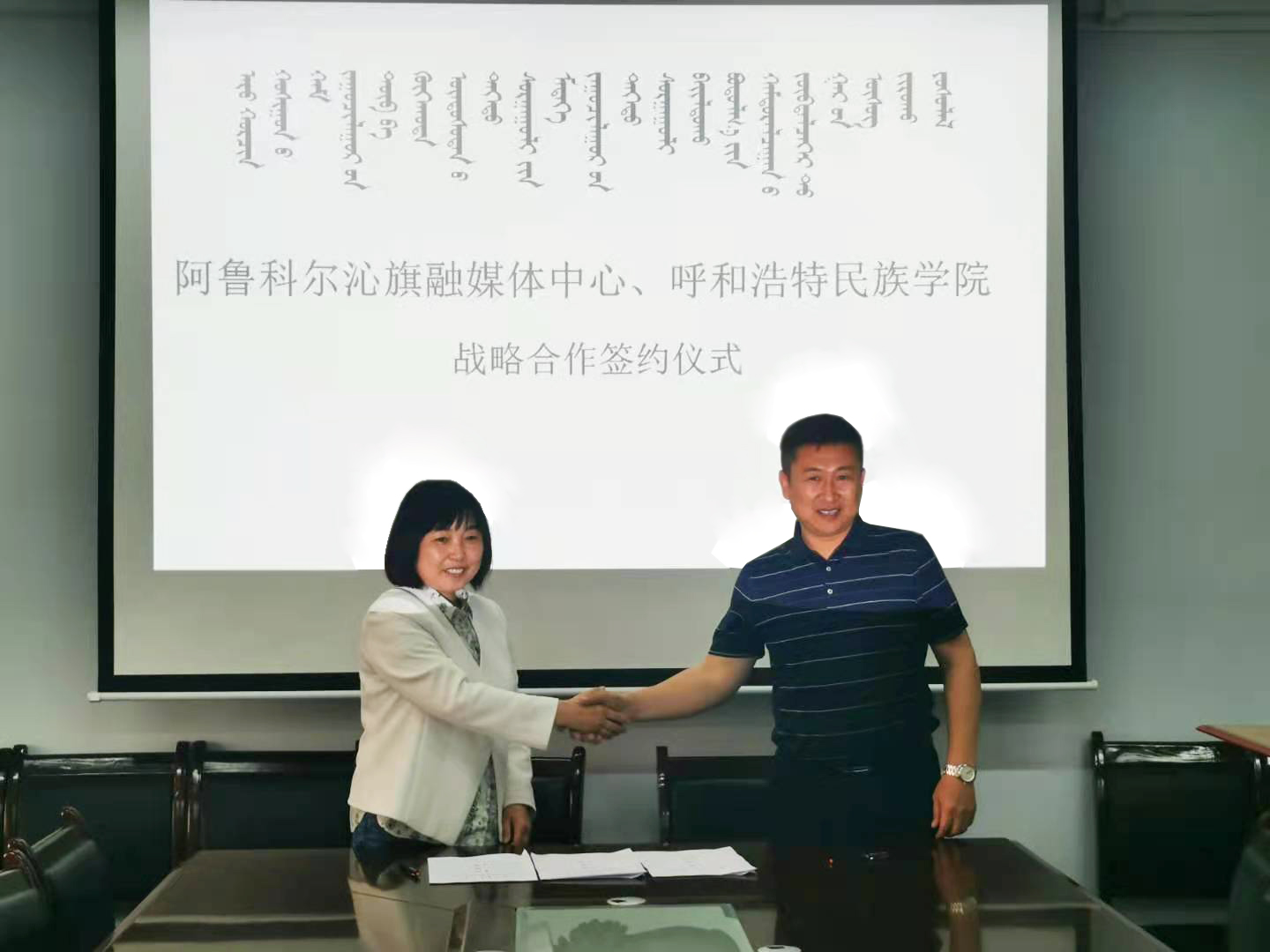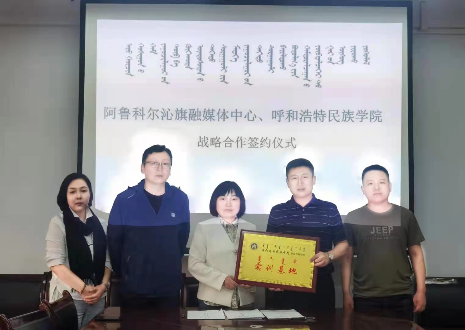 5月20日,阿鲁科尔沁旗融媒体中心主任赛因巴图与副主任巴雅尔图来我院共建大学生实习实训基地。额尔敦毕力格党总支书记、哈申图雅院长、安迎春副院长参加了签约座谈会。