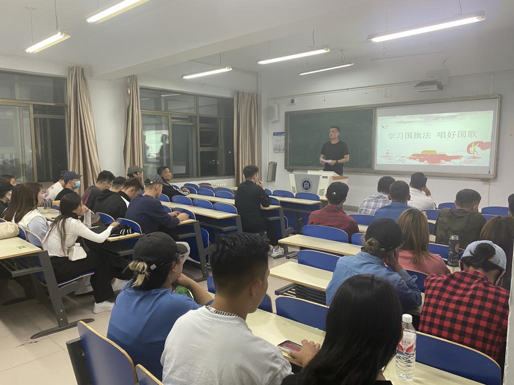 9月27日19时,新闻传媒学院在都林楼503教室开展了“学好国旗法,唱好国歌”的主题学习活动,辅导员苏日巴特老师携2019级学生参加活动。