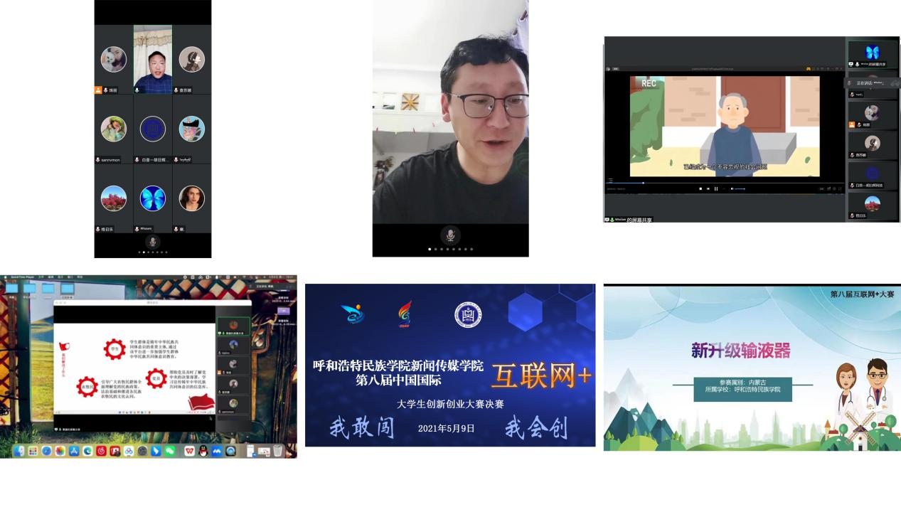 根据学校《关于推进“互联网+”大学生创新创业大赛的通知》要求,5月9日,新闻传媒学院以线上方式举办了题为“我敢闯,我会创”的大学生“互联网+”创新创业大赛。比赛特别邀请化学与环境学院包秀霞、公共管理学院前达蒙、经济管理学院郭晶、蒙古学学院格日勒四位双创导师和内蒙古胡日辉科技发展有限公司项目经理白音布日德担任专家评委。创新创业学院哈斯同力嘎院长、办公室主任多荣娜、新闻传媒学院党总支书记额尔敦毕力格、副院长安迎春、党总支副书记王丽、网络与新媒体教研室主任乌兰以及其他学院“互联网+”项目师生等60余人观看了本次比赛。