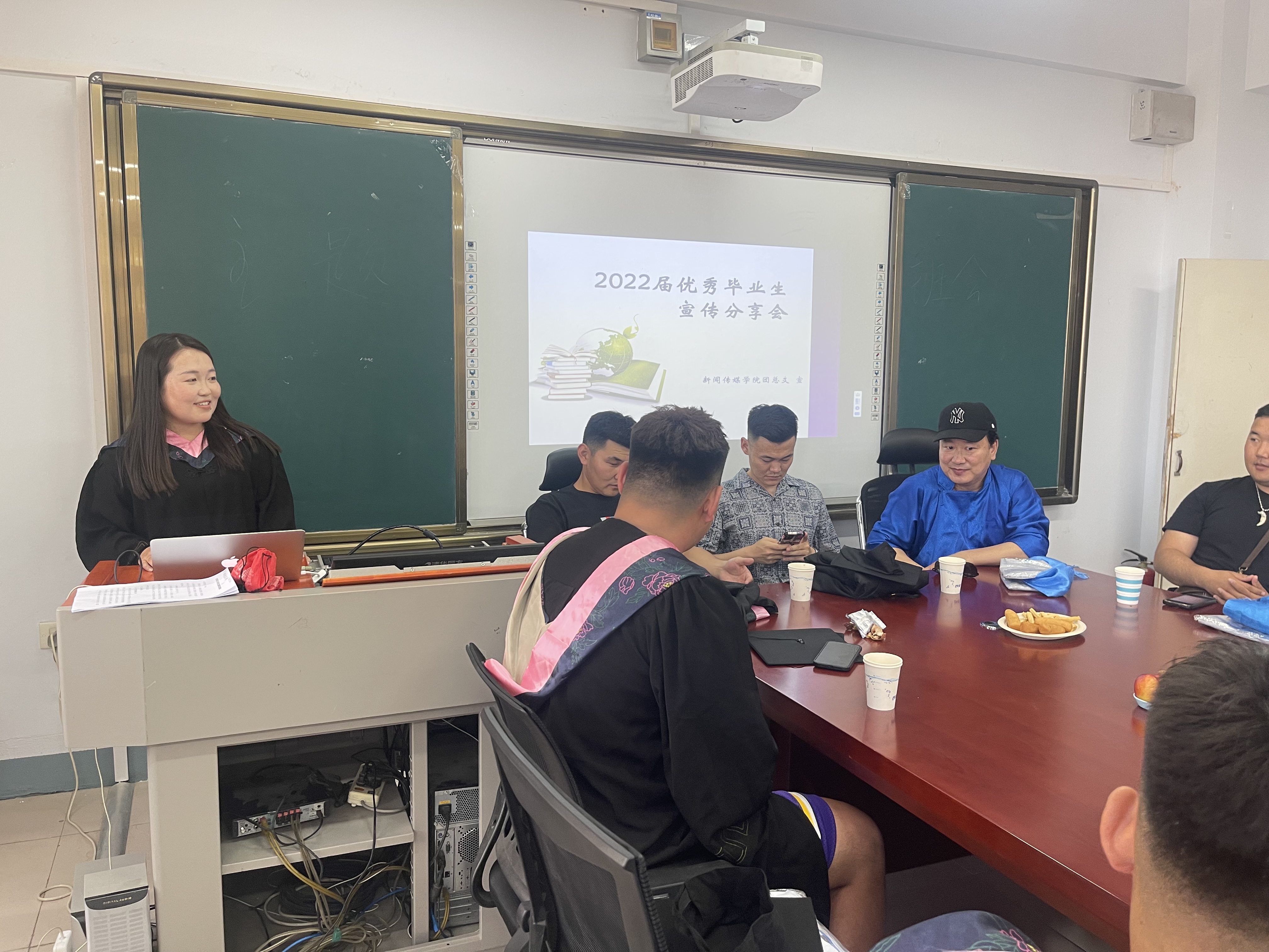 之后,进行了由旭日老师组织的毕业生主题团日活动。通过召开本次特别团日活动,鼓励我院2022届毕业生唱响主旋律,壮大正能量,做社会主义核心价值观的坚定信仰者,积极传播者,模范践行者,争做堪当民族复兴重任的时代新人。紧接着,由2018级新闻学班的优秀毕业生欣昕同学生动地讲述了自己的故事,充分发挥了榜样的引领示范作用。通过此番“优毕说”经验分享会告诫同学们她的经验以及很多的人生哲理,让更多的毕业生领悟了一份付出一份收获。最后又开展一系列职场适应活动,2018级新闻学班的白诺木吉荣同学上台讲述了自己求职经验及现在所做的工作经验,给同学们以后的求职路上奠定了基础,为漫漫人生路指明了方向。