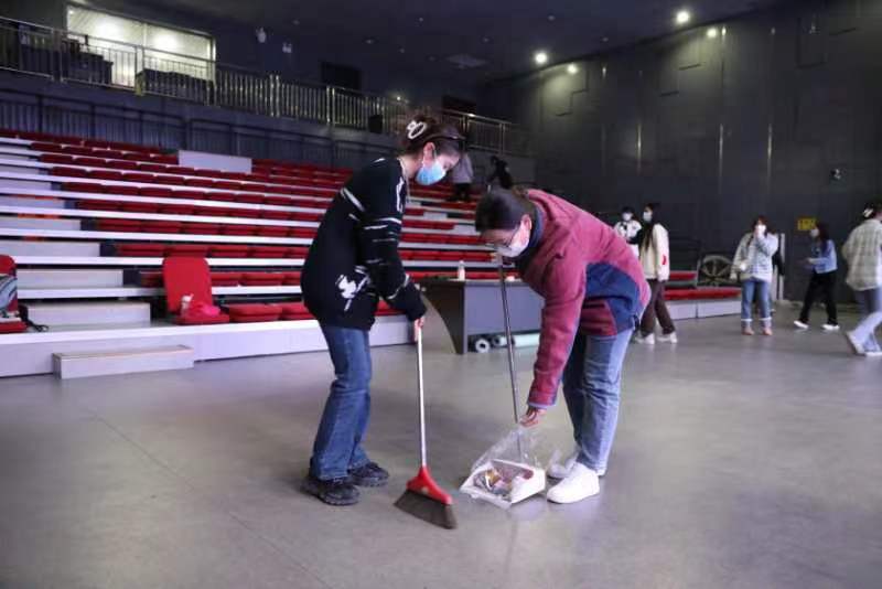 活动当天,参与学生分成两个小组,分赴演播厅和会议室对场地进行打扫,擦洗宣传栏玻璃,同时学记雷锋同志事迹,将志愿精神贯彻至劳动之手。
