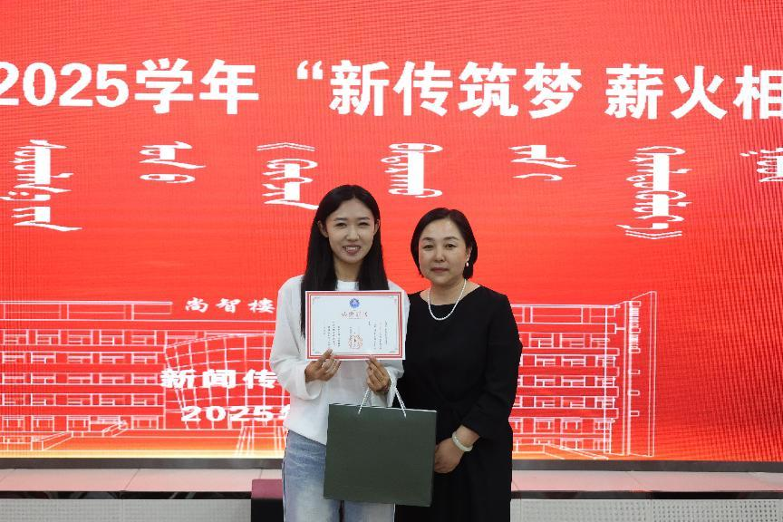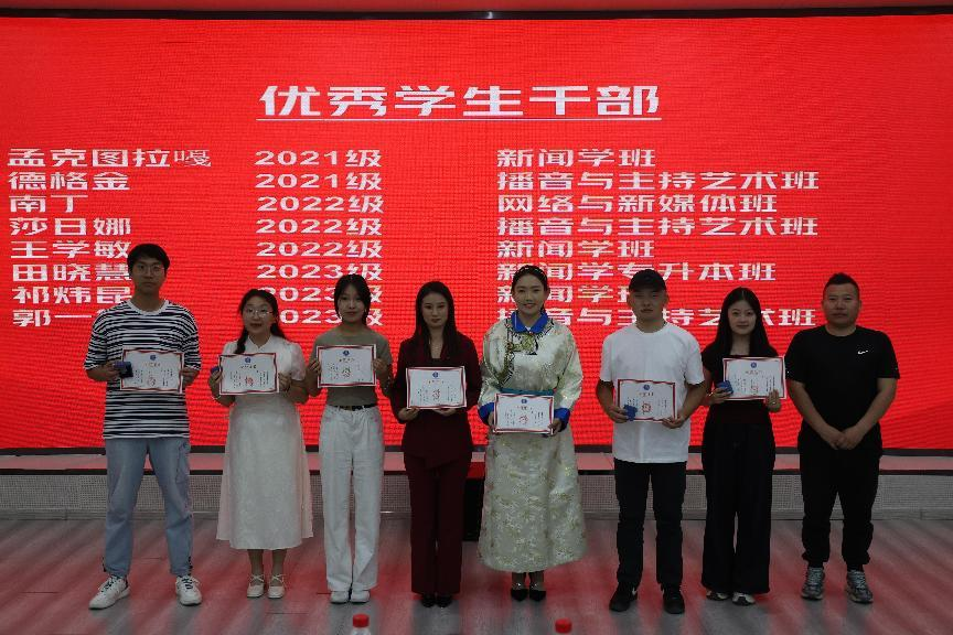 新闻传媒学院学生工作办公室主任斯日古冷为优秀学生干部颁奖