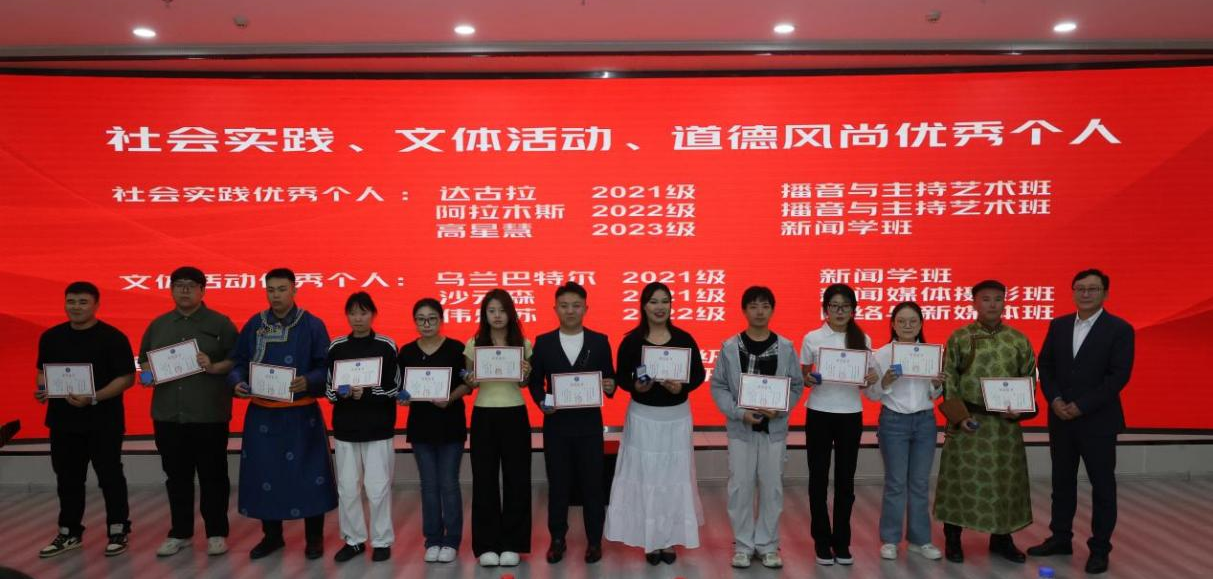 新闻传媒学院院长额尔敦毕力格为专业优秀个人颁奖