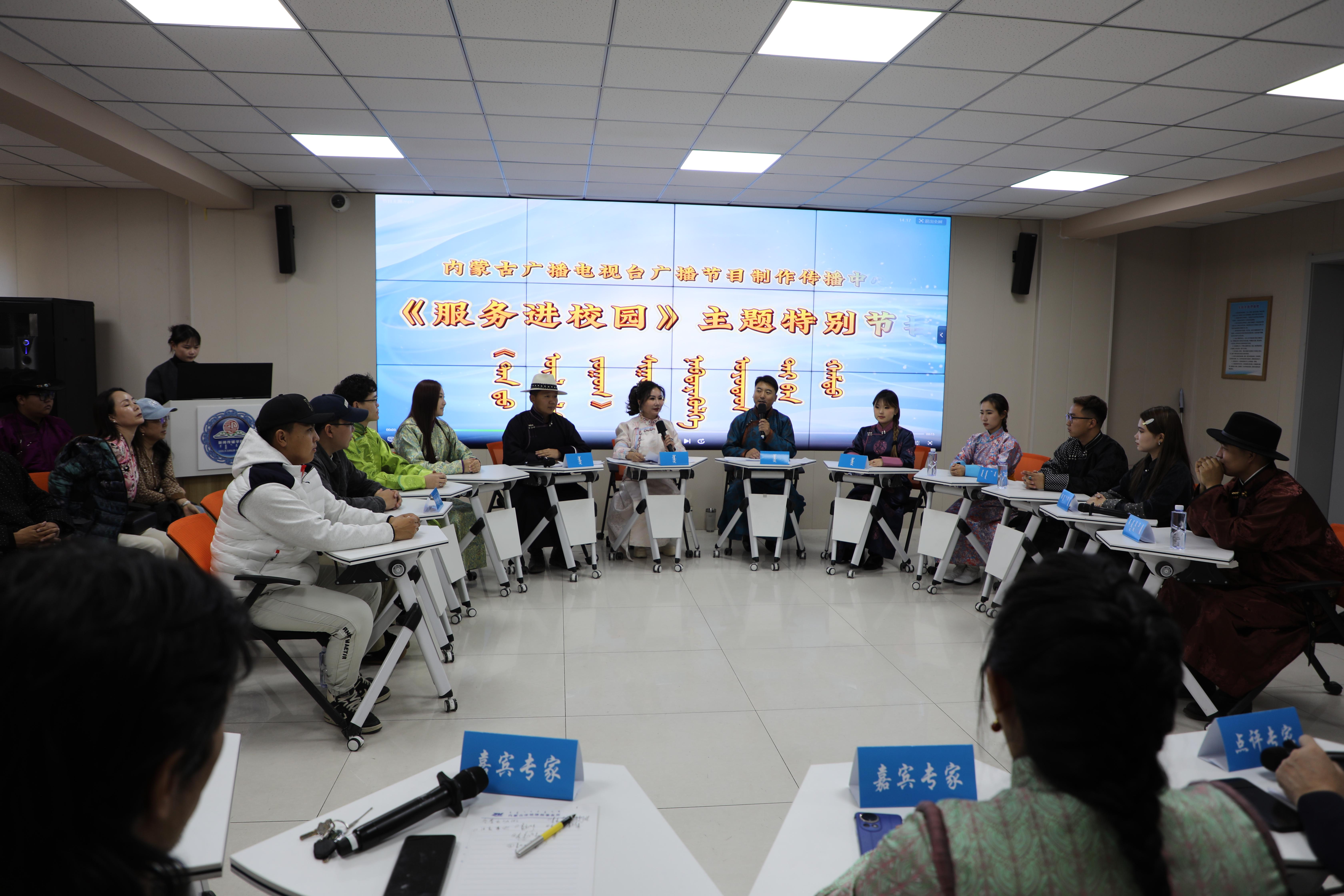 2025年10月19日,新闻传媒学院与内蒙古广播电视台在都林楼314教室联合录制“服务进校园”主题特别节目,呼和浩特市多所高校学生参与其中,我院学子积极参演并呈现马头琴演奏、诗歌朗诵及歌舞表演等特色节目。 节目以知识竞赛为载体普及北疆文化历史知识,随后媒体行业专家与师生代表围绕全媒体内容生产、声音创作技巧等专业话题展开深度交流。 此次活动有效整合高校教育资源与媒体行业资源,为学生搭建行业前沿实践平台,助力提升专业实操能力。据悉,该节目后续将在内蒙古广播电视台播出。