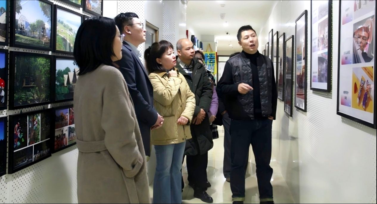 随后到广西新影响禾集文化集团有限公司,实地考察其在实景演出、文创设计、AI技术应用等领域的项目成果。座谈会上,企业执行总裁张飞详细介绍了公司在AI漫剧、虚拟内容制作等方面的实践探索。调研组重点了解了AI技术在短剧、动漫内容生产中的落地模式与人才需求,为后续优化实践教学体系与就业指导方向积累了宝贵经验。