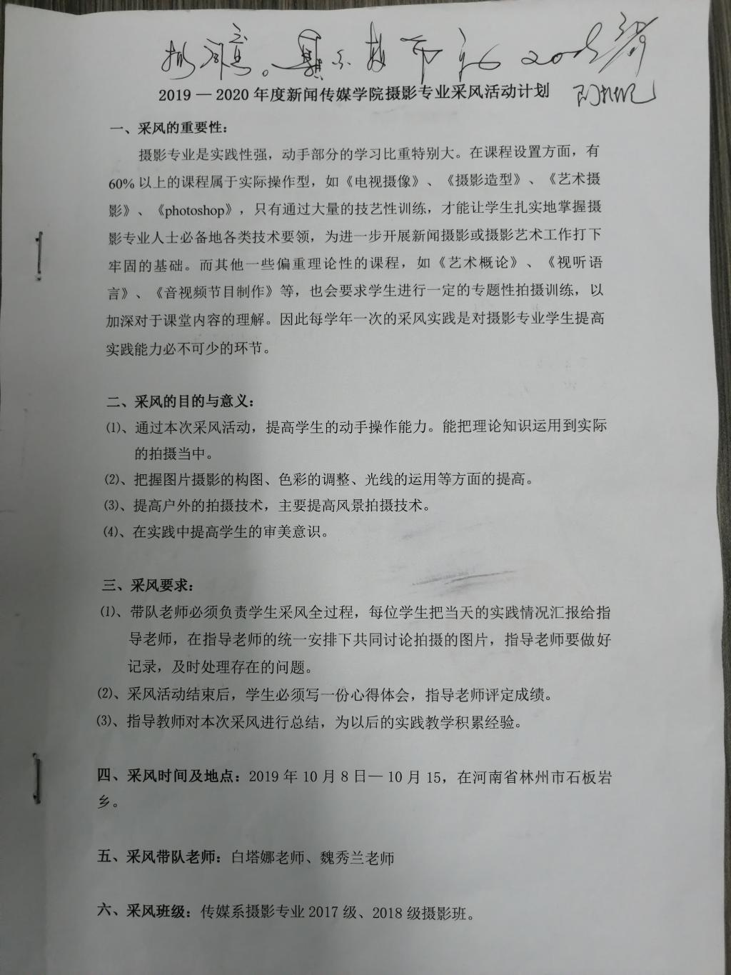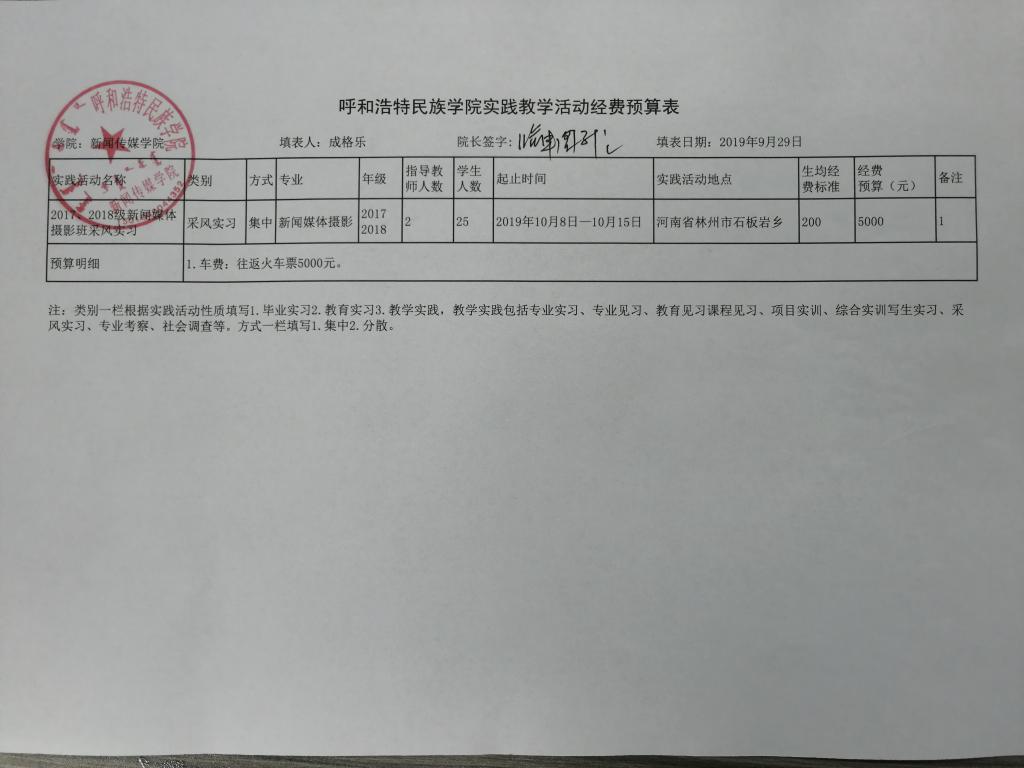 根据《Beat365唯一官方网站实习实践教学经费管理办法》要求,现将公示2019—2020学年度第一学期摄影专业采风活动的计划及经费预算。2017、2018级摄影班共19名学生参加了本次采风。申请经费为3800.00元,用于学生交通费上。公示期限为3天,2019年11月13日至2019年11月15日。如有异议,请在公示期间内向院领导反映。 新闻传媒学院 2019年11月12日