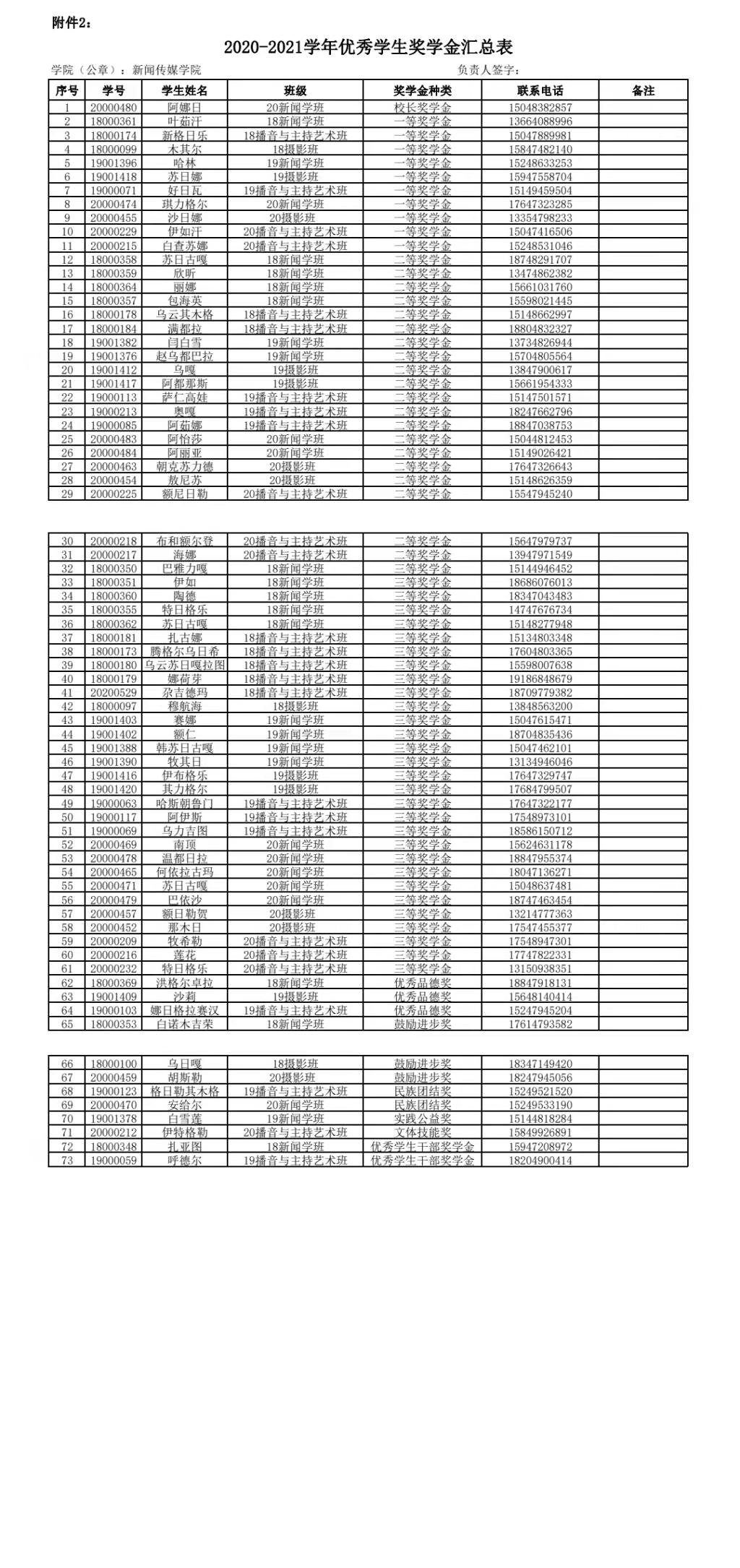 新闻传媒学院拟获“Beat365唯一官方网站2020-2021学年优秀学生奖学金”名单公示