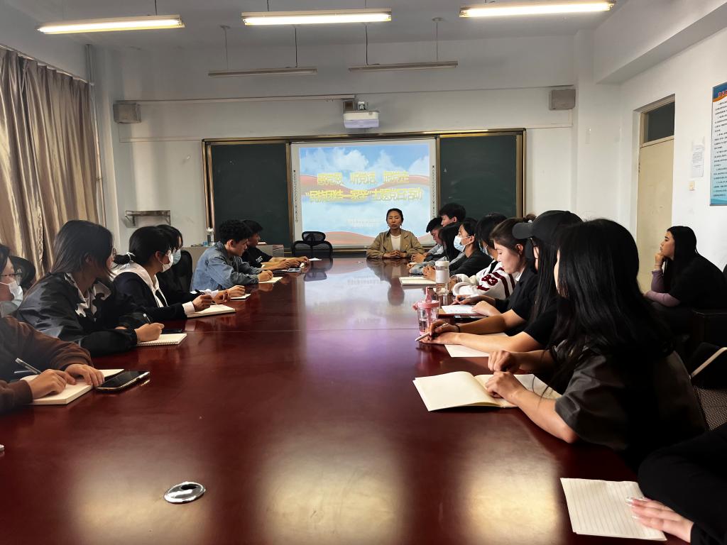 5月22日下午,我院学生党支部在都林楼423会议室开展“民族团结一家亲”主题党日活动。党支部书记珠丽就民族法治内容讲授党课,意在深化主题教育,促进民族团结,铸牢中华民族共同体意识。 会上还同时开展了“听党话 感党恩 跟党走”主题故事分享会。学生党员积极分享自己的民族团结故事,交流互动,气氛活跃。