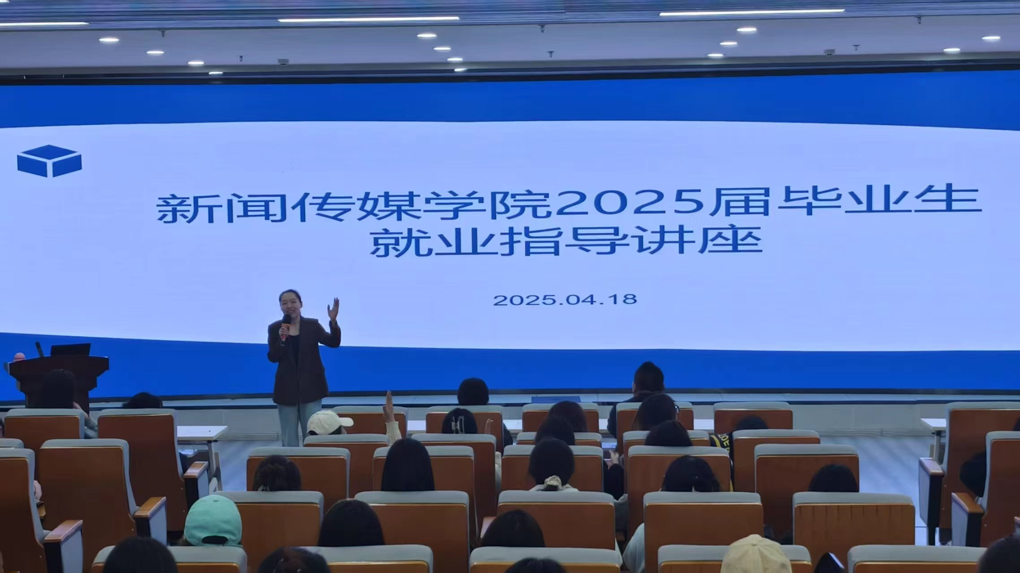为帮助学生更好地了解当前就业形势,提升就业能力,新闻传媒学院于4月18日在教育馆一楼报告厅举办了2025届毕业生就业指导讲座。此次讲座吸引了众多学生参加,现场气氛热烈。