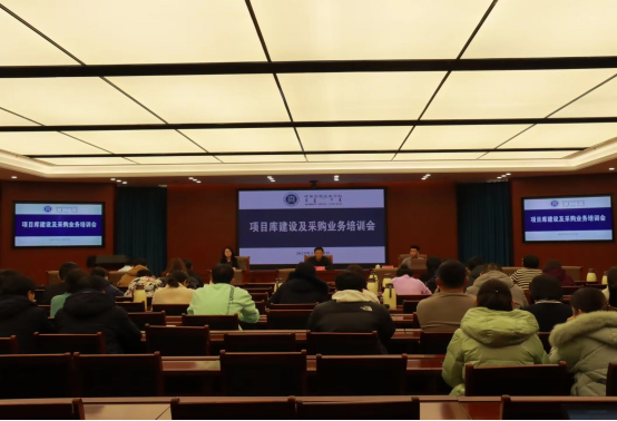 11月23日下午,学校举办项目库建设及采购业务培训会。校党委委员、副校长高喜天出席会议并做动员讲话。各部门、各学院负责人、报账员共计90余人参加本次培训。财务处处长王小梅主持会议。