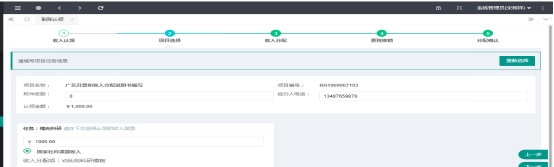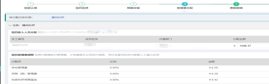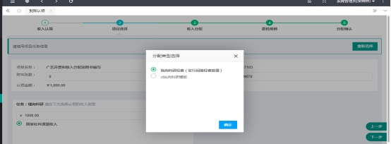 如果认领项目是科研项目就选择科研收入分配;认领项目不是科研项目则选择其他收入分配后弹出如下图所示。