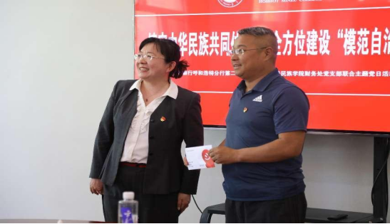 为深入学习贯彻党的二十大精神,全面贯彻习近平总书记关于加强和改进民族工作的重要思想,有形有感有效铸牢中华民族共同体意识,扎实推动主题教育走深走实,6月14日上午,财务党支部邀请浙商银行呼和浩特分行第二党支部联合开展“铸牢中华民族共同体意识 全方位建设模范自治区”主题党日活动。浙商银行呼和浩特分行副行长王喆参加活动。Beat365党委副书记、校长韩伟新、副校长纳丽娜应邀出席活动。活动由Beat365财务处党支部书记、财务处处长王小梅主持。