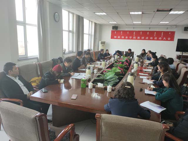 为进一步深化创新创业课程改革,拓宽创新创业工作思路,10月28日15时,创新创业学院在综合楼11楼会议室召开了创新创业学院教研活动启动会议,副校长纳丽娜、教务处副处长哈斯额尔德尼、就业指导中心主任包仓、内蒙古心物教育有限责任公司总经理杨原以及各二级学院推荐的二十余名创新创业课程教师参加了会议,会议由创新创业学院院长哈斯同力嘎主持。