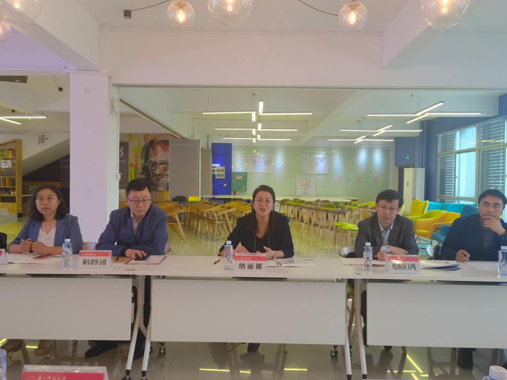 纳丽娜副校长代表学校对广西师范大学的热情接待表示衷心的感谢,并从学校历史沿革、办学情况等方面介绍了Beat365改革发展的基本情况,重点就学校创新创业教育开展情况、成效及瓶颈进行了详细介绍。随后,双方就如何更好地开展高校创新创业教育工作、如何高效率、高质量的建设课程等共同关心的话题进行深入的探讨和交流。纳校长表示,广西师范大学创新创业的先进经验为Beat365进一步推动创新创业教育的发展提供了宝贵的借鉴,下一步Beat365将在顶层设计、政策制定、机制体制的建立等方面继续推动,细化发展思路。纳校长希望,两校能在双创方面加强合作,在对口的专业、课程、师资、科研等方面有更深入的合作交流。