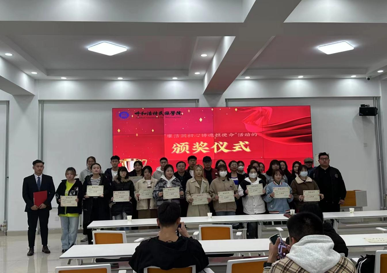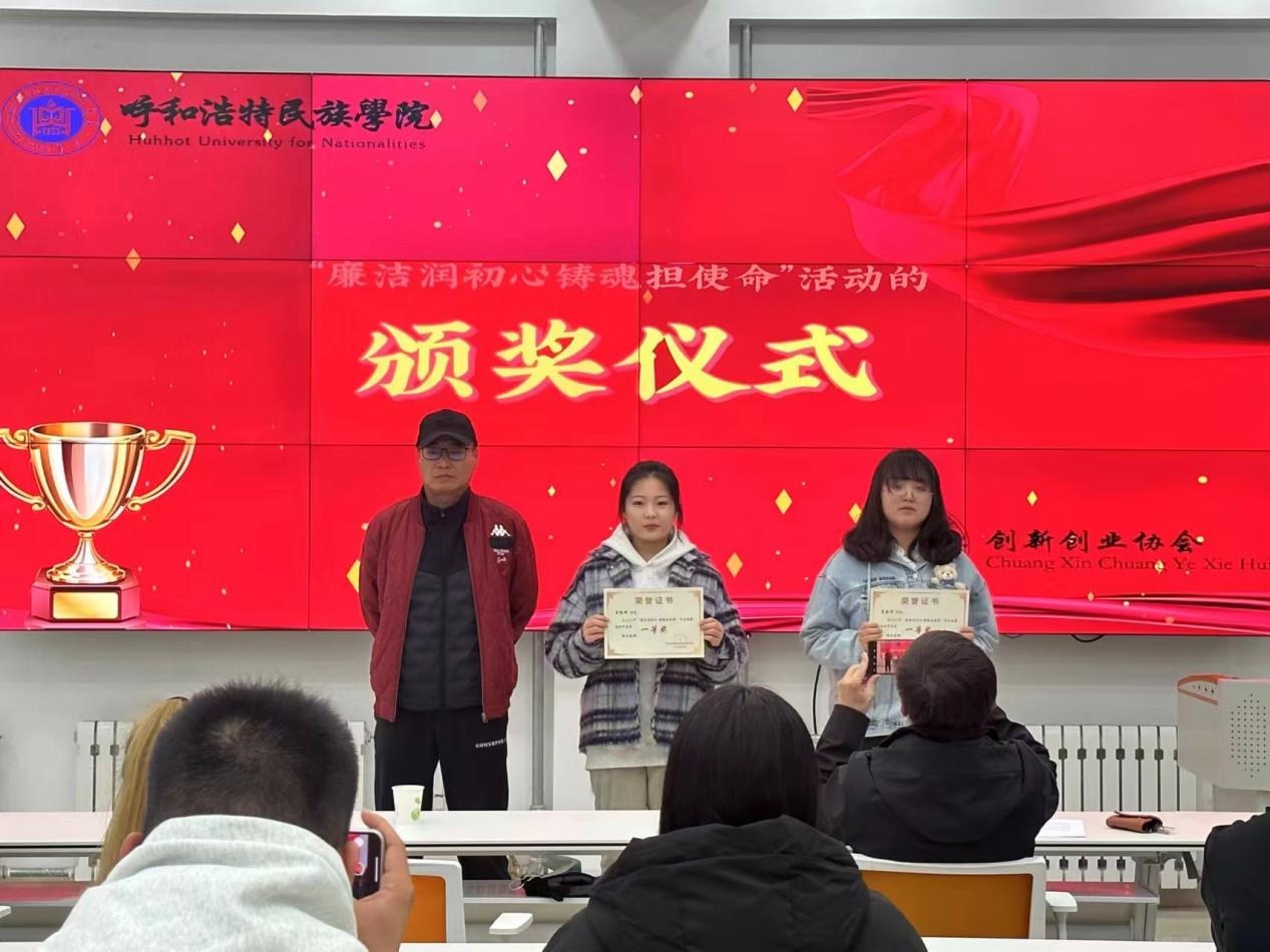 创新创业学院于3月24日晚七点,在创业楼一楼创业实训室举行“廉洁润初心 铸魂担使命”作品征集活动颁奖仪式,教辅党总支书记那日苏、创新创业学院院长哈斯同力嘎、创新创业学院实训部主任多荣娜以及40余名参赛学生参加了本次活动。