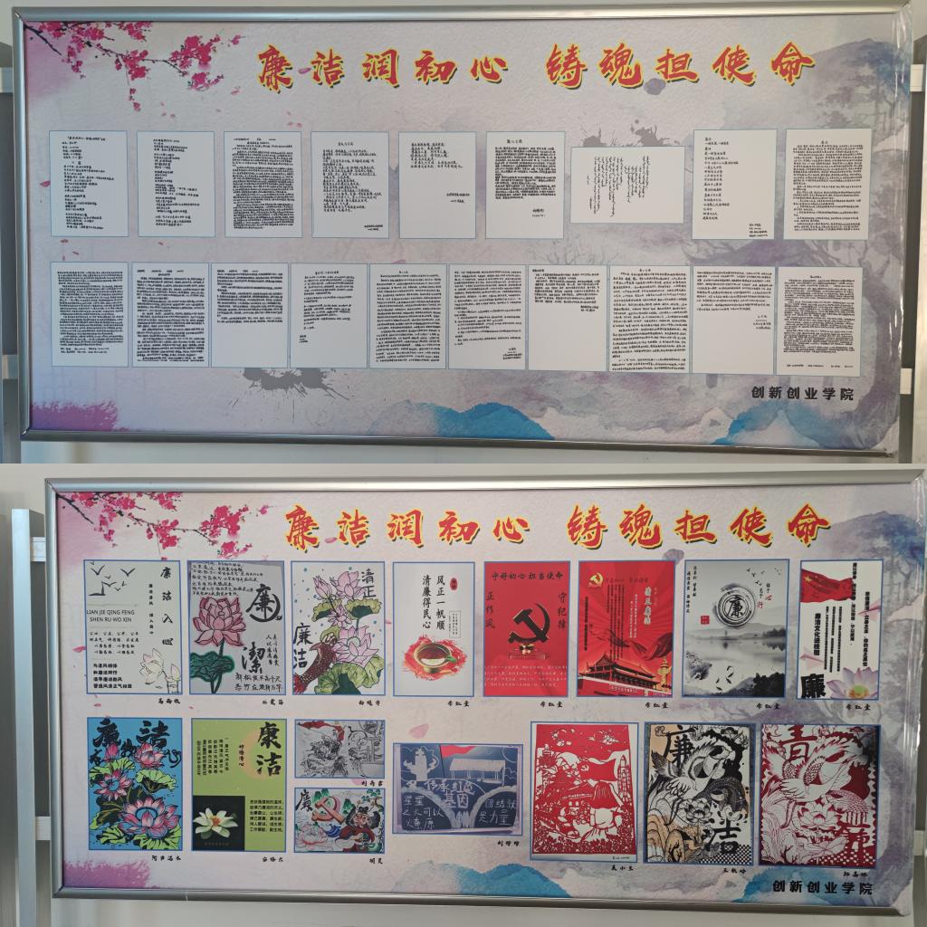 本次“廉洁润初心,铸魂担使命”作品征集活动,旨在为深入学习贯彻党的二十大精神,引导同学们夯实清正廉洁思想根基、培养廉洁自律道德操守,创新创业学院于1月10日至3月17日开展进行。活动期间同学们踊跃报名,积极参与,共征集全学生精心创作的作文、海报、视频等廉洁文化作品72件,经专家组严格评审,评选出40件获奖作品,其中一等奖3名,二等奖4名、三等奖6名和优秀奖若干名。颁奖仪式上,以图片、视频、现场朗诵等形式为大家展示了部分获奖作品。获奖作品围绕活动主题,将廉洁正气融贯于作品中,弘扬廉明公正的精神和理念。
