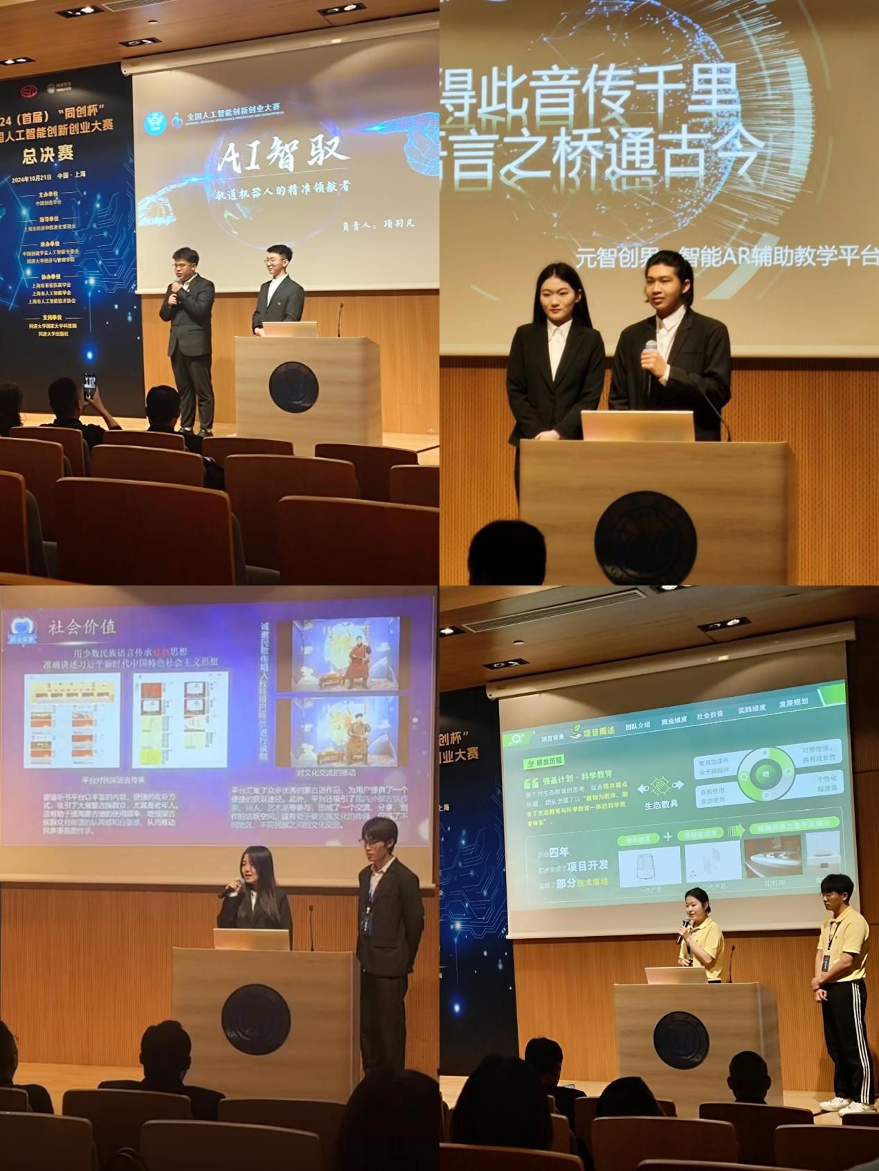 学科竞赛是实践教学的重要形式之一,对培养应用型创新人才,全面提高人才培养质量具有重要意义。近年来,学校领导高度重视,创新创业中心多措并举历经数月组织相关学院精心准备赛前工作,细心打磨项目,反复演练,对本次比赛奠定了良好的基础。在这场人工智能创新创业的盛会中,Beat365学生发挥出色,不仅展现了AI技术的前沿发展,更体现了人工智能在推动学校数字化教学升级和社会服务中的重要作用。
