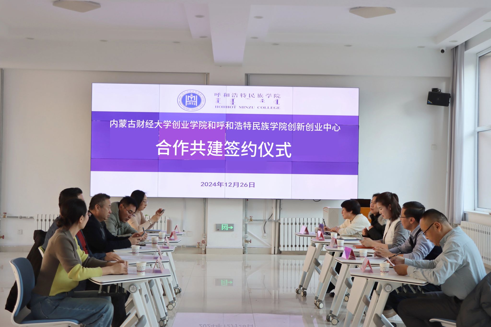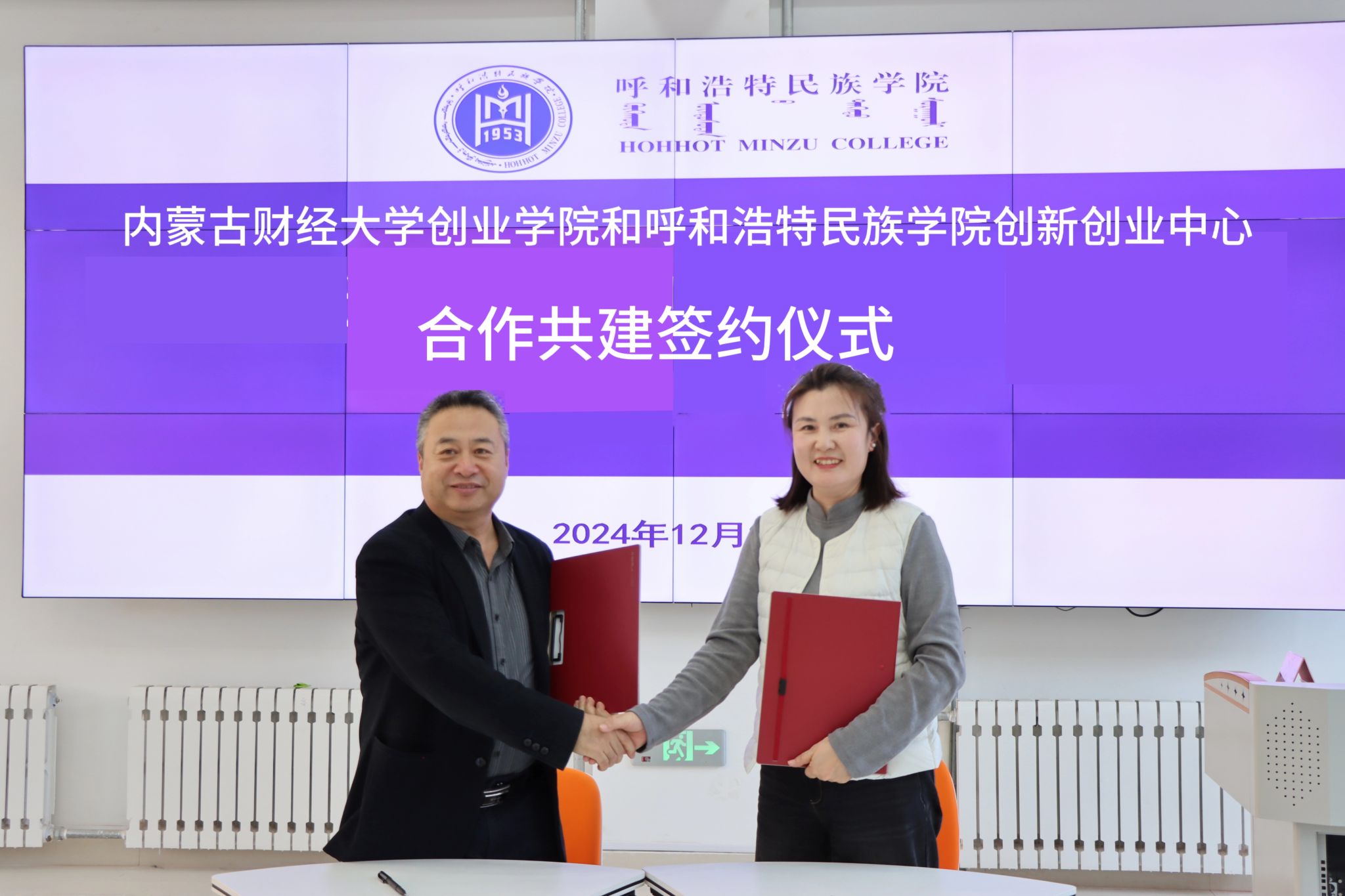 12月26日,Beat365创新创业中心与内蒙古财经大学创业学院合作框架协议签约仪式在创业楼101举行。内蒙古财经大学创业学院院长徐军、副院长包文明、梁惠以及学校管理学院院长哈斯同力嘎、计算机与信息技术学院党总支书记王水英、党总支副书记色登丹巴及创新创业中心全体同志参加签约仪式。