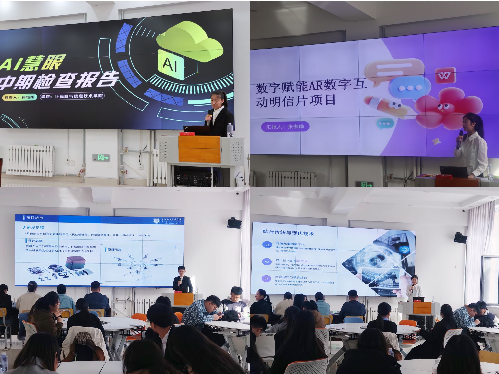 会上,各项目团队代表依次上台,通过PPT演示的方式,详细汇报了项目的研究进展、取得的阶段性成果、经费使用情况以及遇到的问题和解决方案。部分项目在技术研发、市场调研、商业模式创新等方面取得了显著进展,展示了同学们的创新思维和实践能力。